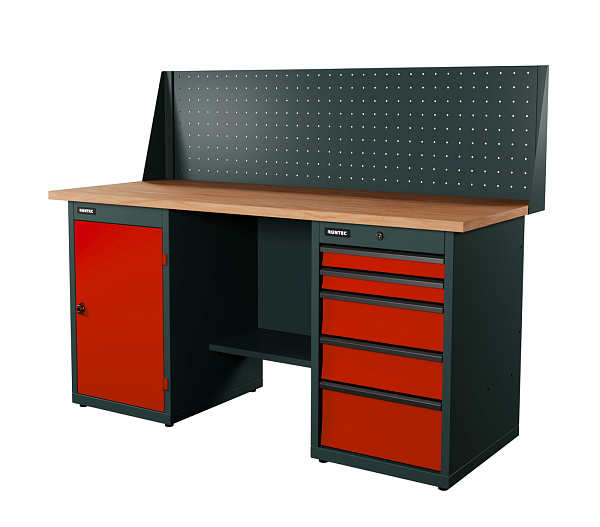 Верстак серии Industrial, 1700 мм, фанера, тумба с дверью + тумба с 5-ю ящиками, экран 500, красный RAL 3020, RUNTEC, RTI17F-TI0-TI5-P17-3020
