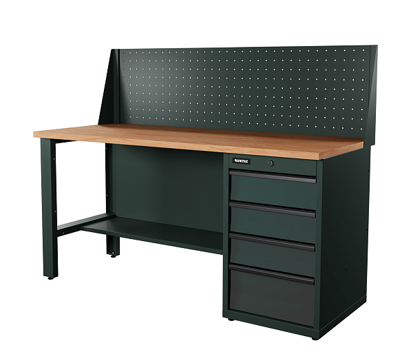 Верстак серии Industrial, 1700 мм, фанера, тумба с 4-мя ящиками, экран 500, серый RAL 7016, RUNTEC, RTI17F-TI4-NI-P17-7016