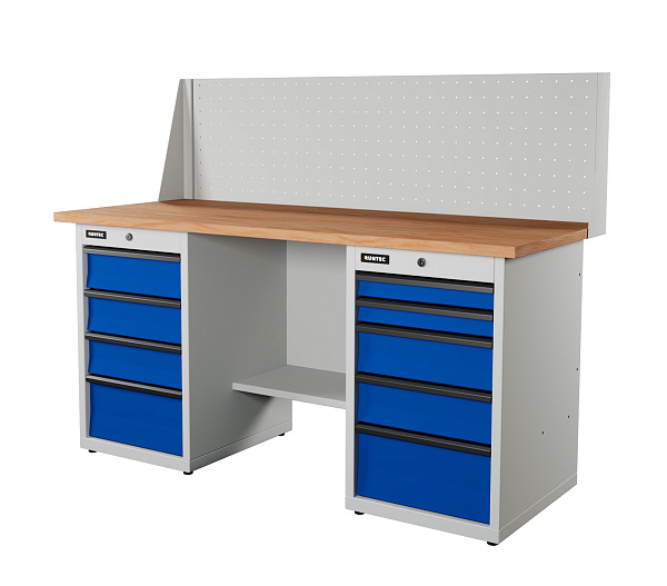 Распределенная нагрузка на верстак достигает 1500 кг благодаря использованию конструкционной стали толщиной от 1 до 2 мм при производстве сборочных составляющих. Эпоксидное порошковое покрытие устойчиво к механическим и химическим воздействиям.