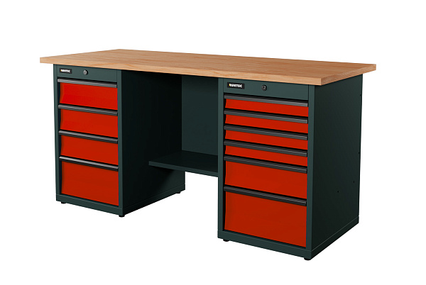 Верстак серии Industrial, 1700 мм, фанера, тумба с 4-мя ящиками + тумба с 6-ю ящиками, красный RAL 3020, RUNTEC, RTI17F-TI4-TI6-3020
