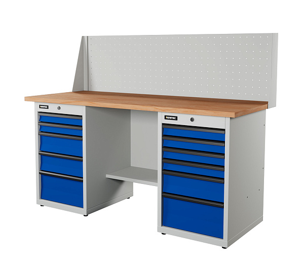 Верстак серии Industrial из конструкционной стали. Встроенные замки с системой Easy Lock позволяют закрыть все ящики одним поворотом ключа. Верстак рассчитан на распределенную нагрузку до 1500 кг.