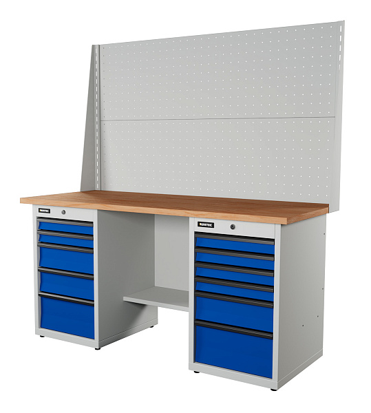 Верстак серии Industrial из конструкционной стали. Встроенные замки с системой Easy Lock позволяют закрыть все ящики одним поворотом ключа. Верстак рассчитан на распределенную нагрузку до 1500 кг.