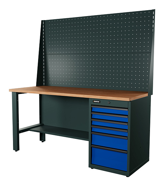 Верстак серии Industrial, 1700 мм, фанера, тумба с 6-ю ящиками, экран 1000, синий RAL 5005