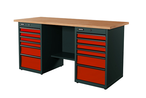 Верстак серии Industrial, 1700 мм, фанера, тумба с 6-ю ящиками + тумба с 6-ю ящиками, красный RAL 3020