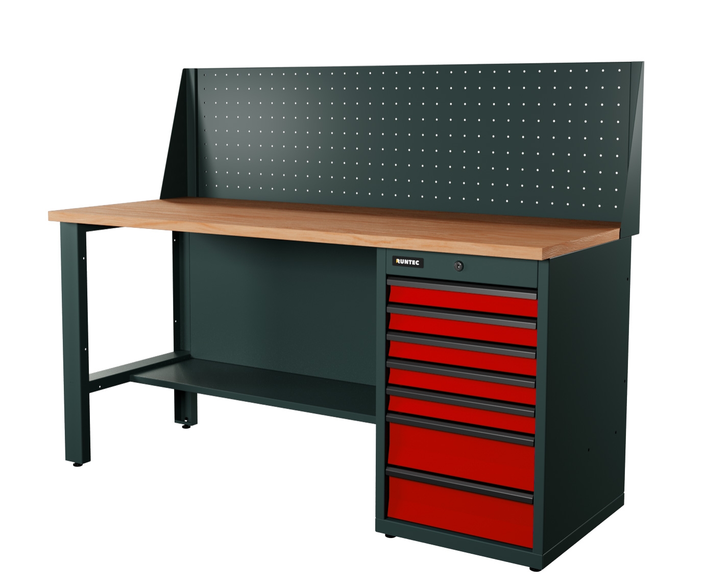 Верстак серии Industrial, 1700 мм, фанера, тумба с 7-ю ящиками, экран 500, красный RAL 3020
