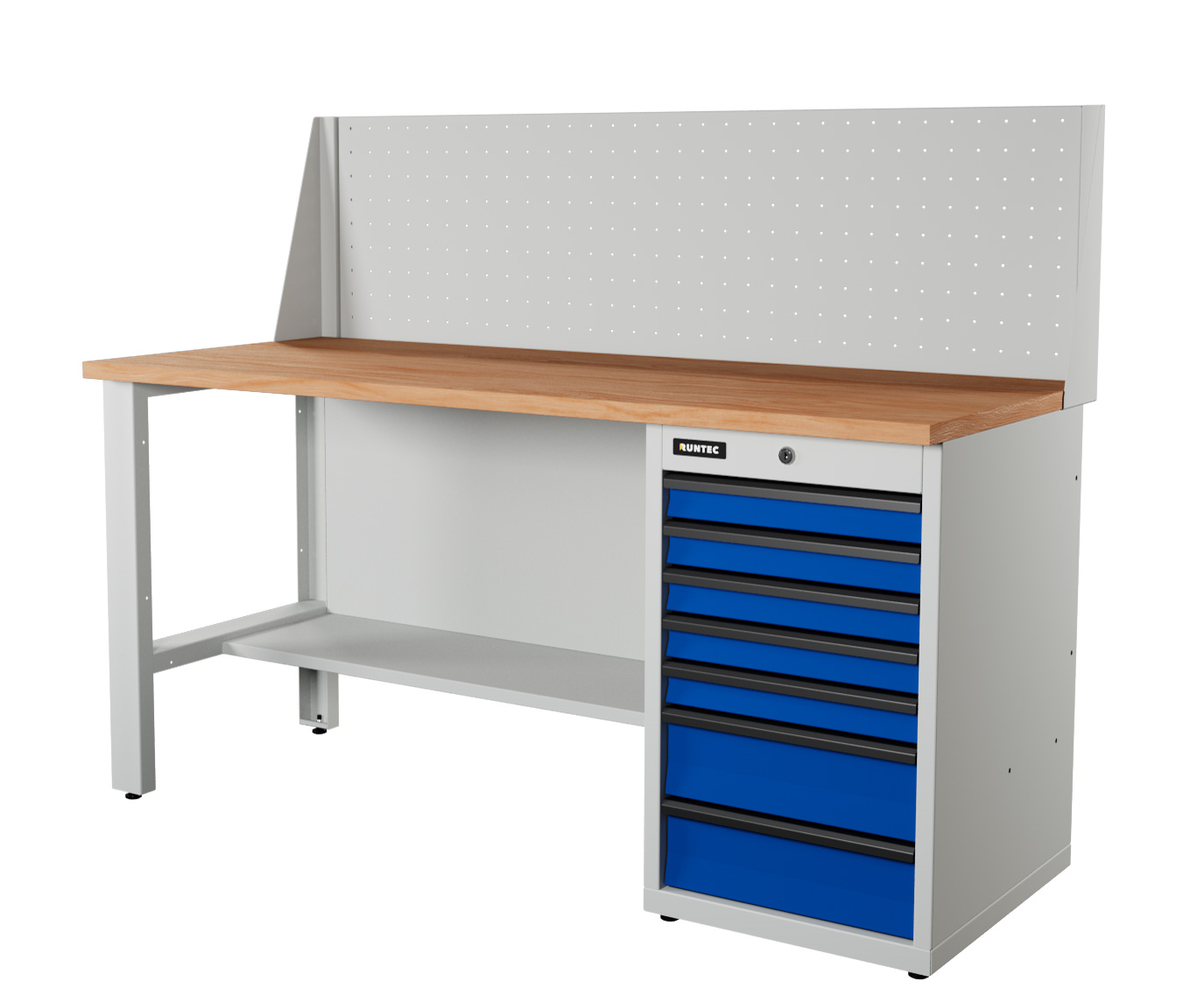 Верстак серии Industrial, 1700 мм, фанера, тумба с 7-ю ящиками, экран 500, синий (светло-серый) RAL 5005 (7035)
