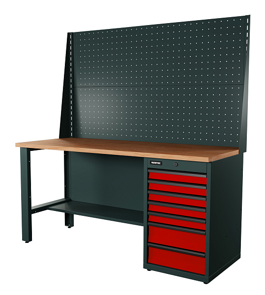 Верстак серии Industrial, 1700 мм, фанера, тумба с 7-ю ящиками, экран 1000, красный RAL 3020