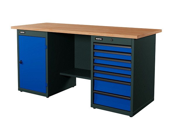 Верстак серии Industrial, 1700 мм, фанера, тумба с 7-ю ящиками + тумба с дверью, синий RAL 5005, RUNTEC, RTI17F-TI7-TI0-5005