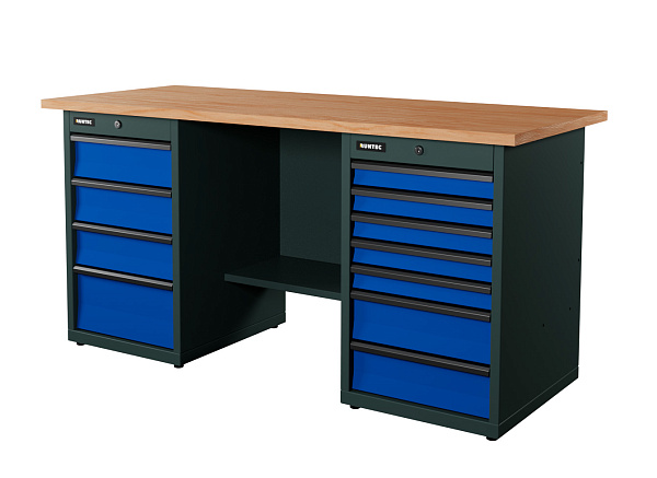 Верстак серии Industrial из конструкционной стали. Встроенные замки с системой Easy Lock позволяют закрыть все ящики одним поворотом ключа. Верстак рассчитан на распределенную нагрузку до 1500 кг.
