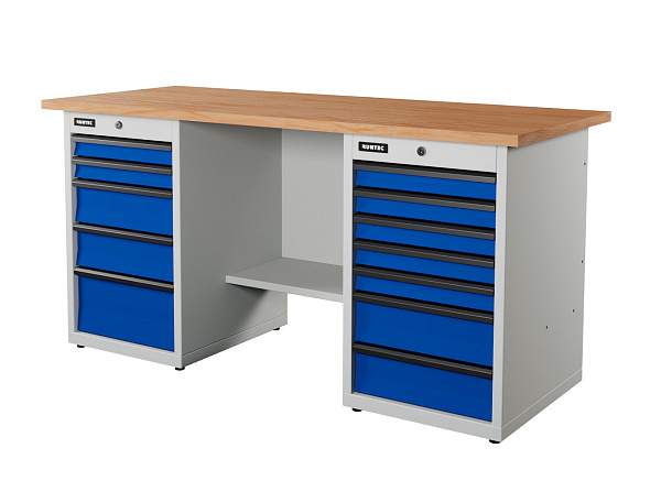 Верстак серии Industrial из конструкционной стали. Встроенные замки с системой Easy Lock позволяют закрыть все ящики одним поворотом ключа. Верстак рассчитан на распределенную нагрузку до 1500 кг.