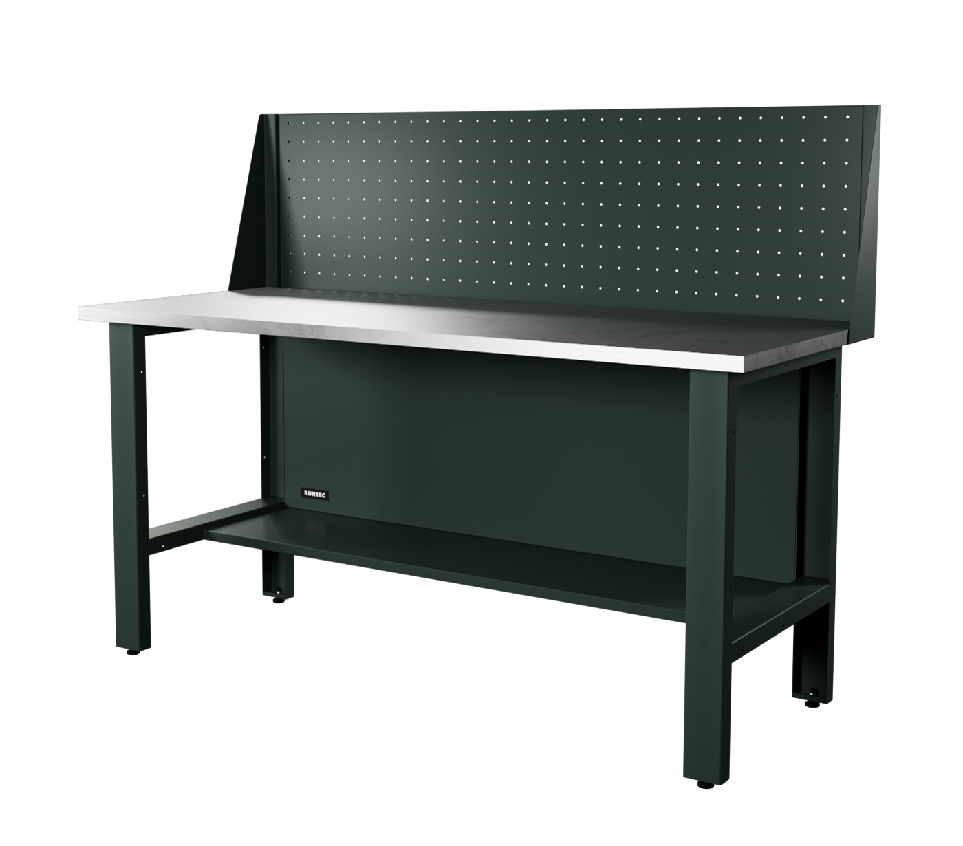 Распределенная нагрузка на верстак достигает 1500 кг благодаря использованию конструкционной стали толщиной от 1 до 2 мм при производстве сборочных составляющих. Эпоксидное порошковое покрытие устойчиво к механическим и химическим воздействиям.