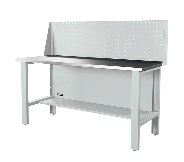 Распределенная нагрузка на верстак достигает 1500 кг благодаря использованию конструкционной стали толщиной от 1 до 2 мм при производстве сборочных составляющих. Эпоксидное порошковое покрытие устойчиво к механическим и химическим воздействиям.