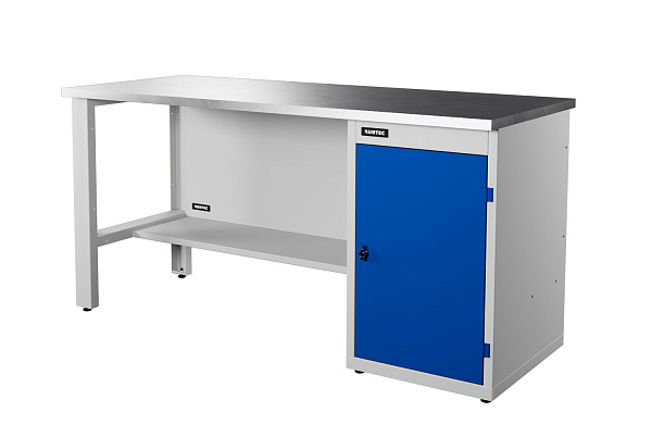 Верстак серии Industrial, 1700 мм, оцинк, тумба с дверью, синий (светло-серый) RAL 5005 (7035)