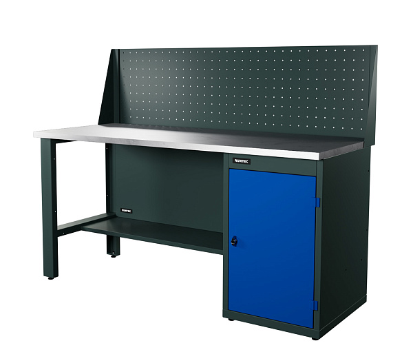 Верстак серии Industrial, 1700 мм, оцинк, тумба с дверью, экран 500, синий RAL 5005, RUNTEC, RTI17Z-TI0-NI-P17-5005
