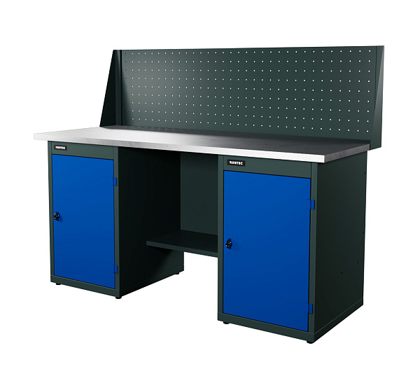 Распределенная нагрузка на верстак достигает 1500 кг благодаря использованию конструкционной стали толщиной от 1 до 2 мм при производстве сборочных составляющих. Эпоксидное порошковое покрытие устойчиво к механическим и химическим воздействиям.