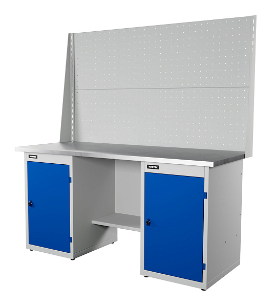 Верстак серии Industrial, 1700 мм, оцинк, тумба с дверью + тумба с дверью, экран 1000, синий (светло-серый) RAL 5005 (70, RUNTEC, RTI17Z-TI0-TI0-P17-P17-5005(7035)