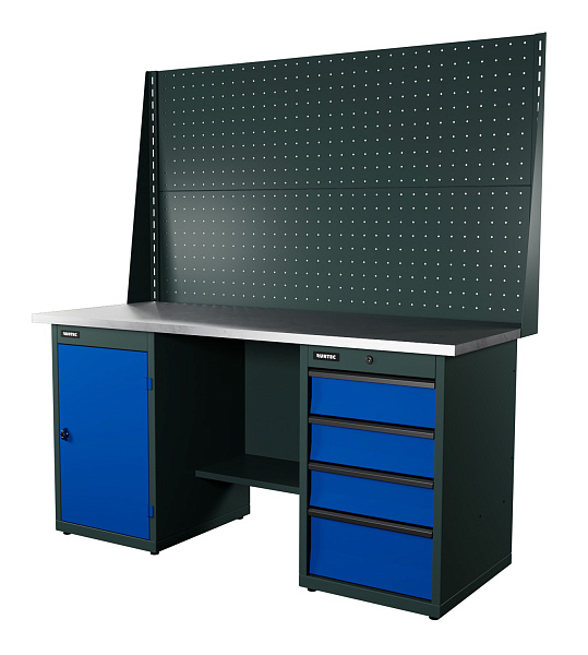 Верстак серии Industrial, 1700 мм, оцинк, тумба с дверью + тумба с 4-мя ящиками, экран 1000, синий RAL 5005