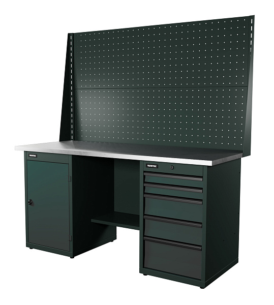 Распределенная нагрузка на верстак достигает 1500 кг благодаря использованию конструкционной стали толщиной от 1 до 2 мм при производстве сборочных составляющих. Эпоксидное порошковое покрытие устойчиво к механическим и химическим воздействиям.