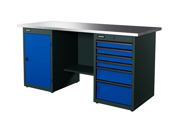 Верстак серии Industrial, 1700 мм, оцинк, тумба с дверью + тумба с 6-ю ящиками, синий RAL 5005