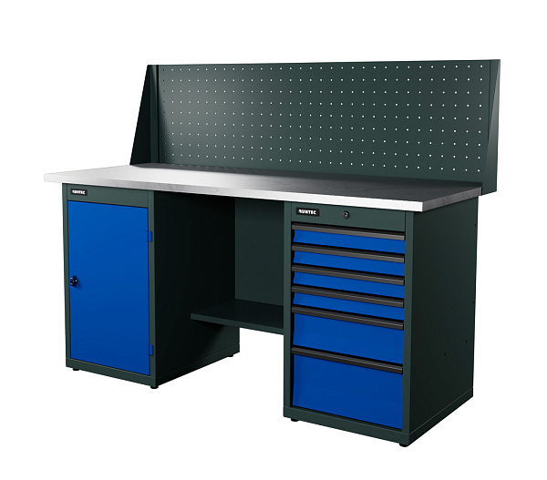 Верстак серии Industrial, 1700 мм, оцинк, тумба с дверью + тумба с 6-ю ящиками, экран 500, синий RAL 5005