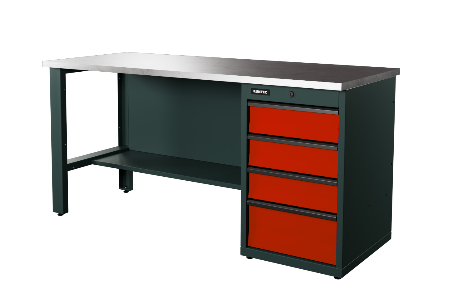 Верстак серии Industrial, 1700 мм, оцинк, тумба с 4-мя ящиками, красный RAL 3020