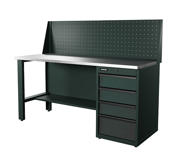 Распределенная нагрузка на верстак достигает 1500 кг благодаря использованию конструкционной стали толщиной от 1 до 2 мм при производстве сборочных составляющих. Эпоксидное порошковое покрытие устойчиво к механическим и химическим воздействиям.