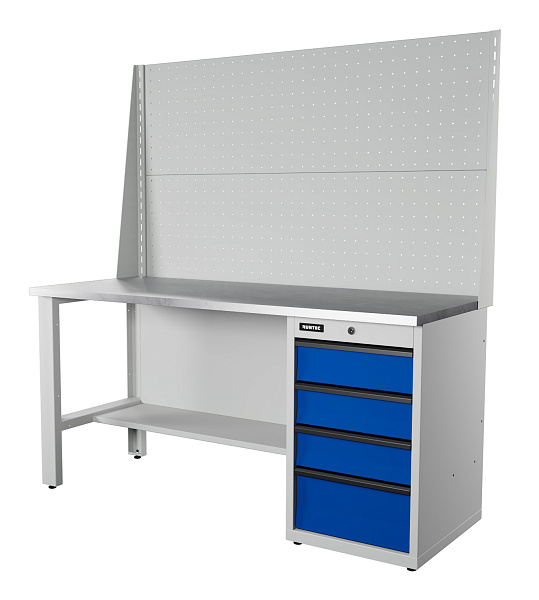 Верстак серии Industrial, 1700 мм, оцинк, тумба с 4-мя ящиками, экран 1000, синий (светло-серый) RAL 5005 (7035), RUNTEC, RTI17Z-TI4-NI-P17-P17-5005(7035)