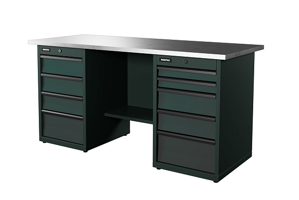 Верстак серии Industrial из конструкционной стали. Встроенные замки с системой Easy Lock позволяют закрыть все ящики одним поворотом ключа. Верстак рассчитан на распределенную нагрузку до 1500 кг.