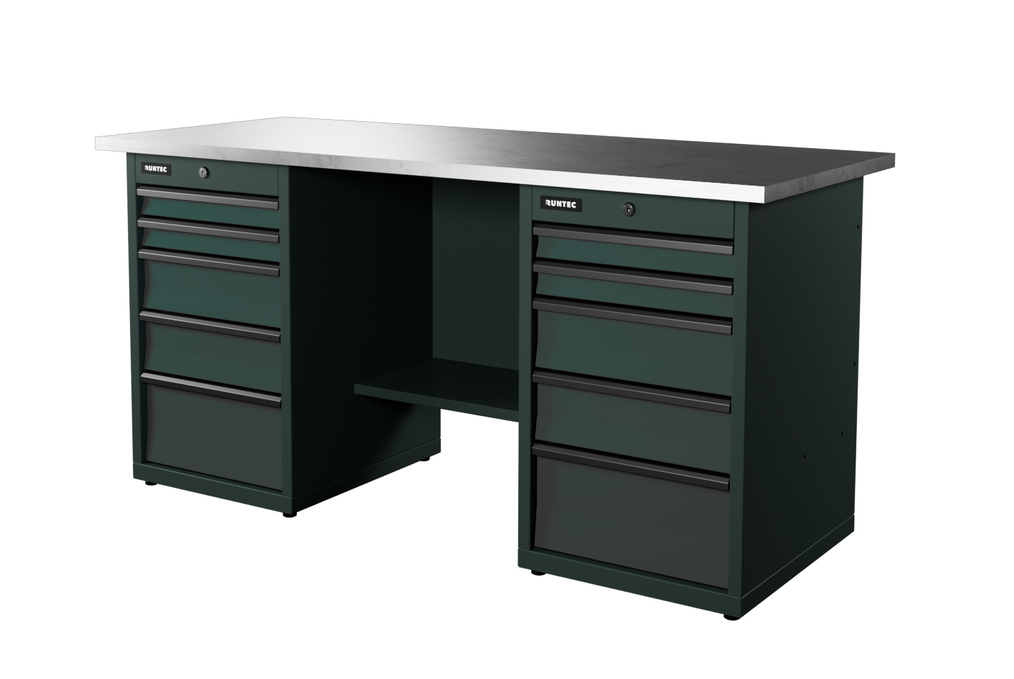Верстак серии Industrial, 1700 мм, оцинк, тумба с 5-ю ящиками + тумба с 5-ю ящиками, серый RAL 7016