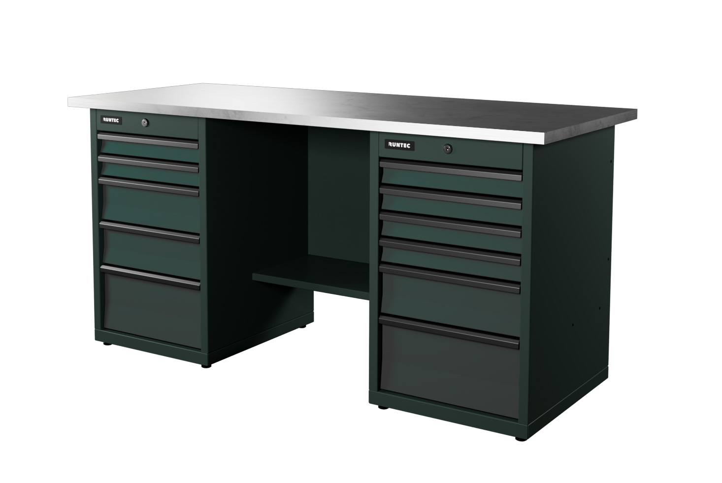 Верстак серии Industrial, 1700 мм, оцинк, тумба с 5-ю ящиками + тумба с 6-ю ящиками, серый RAL 7016