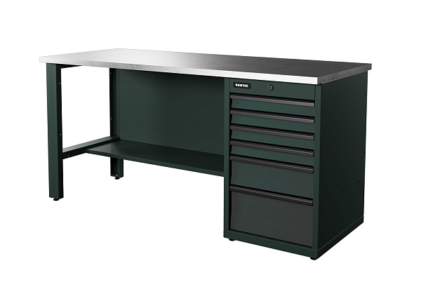 Верстак серии Industrial из конструкционной стали. Встроенные замки с системой Easy Lock позволяют закрыть все ящики одним поворотом ключа. Верстак рассчитан на распределенную нагрузку до 1500 кг.