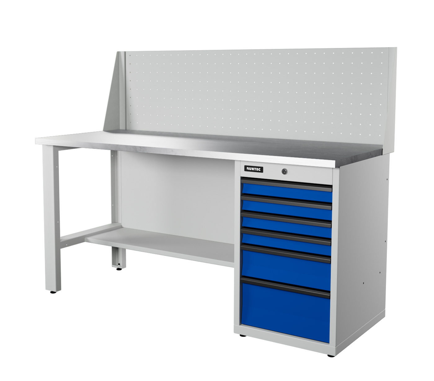 Верстак серии Industrial, 1700 мм, оцинк, тумба с 6-ю ящиками, экран 500, синий (светло-серый) RAL 5005 (7035)