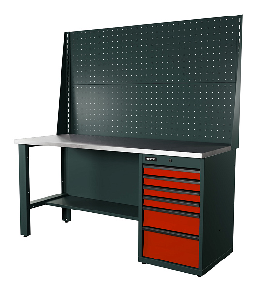 Верстак серии Industrial, 1700 мм, оцинк, тумба с 6-ю ящиками, экран 1000, красный RAL 3020