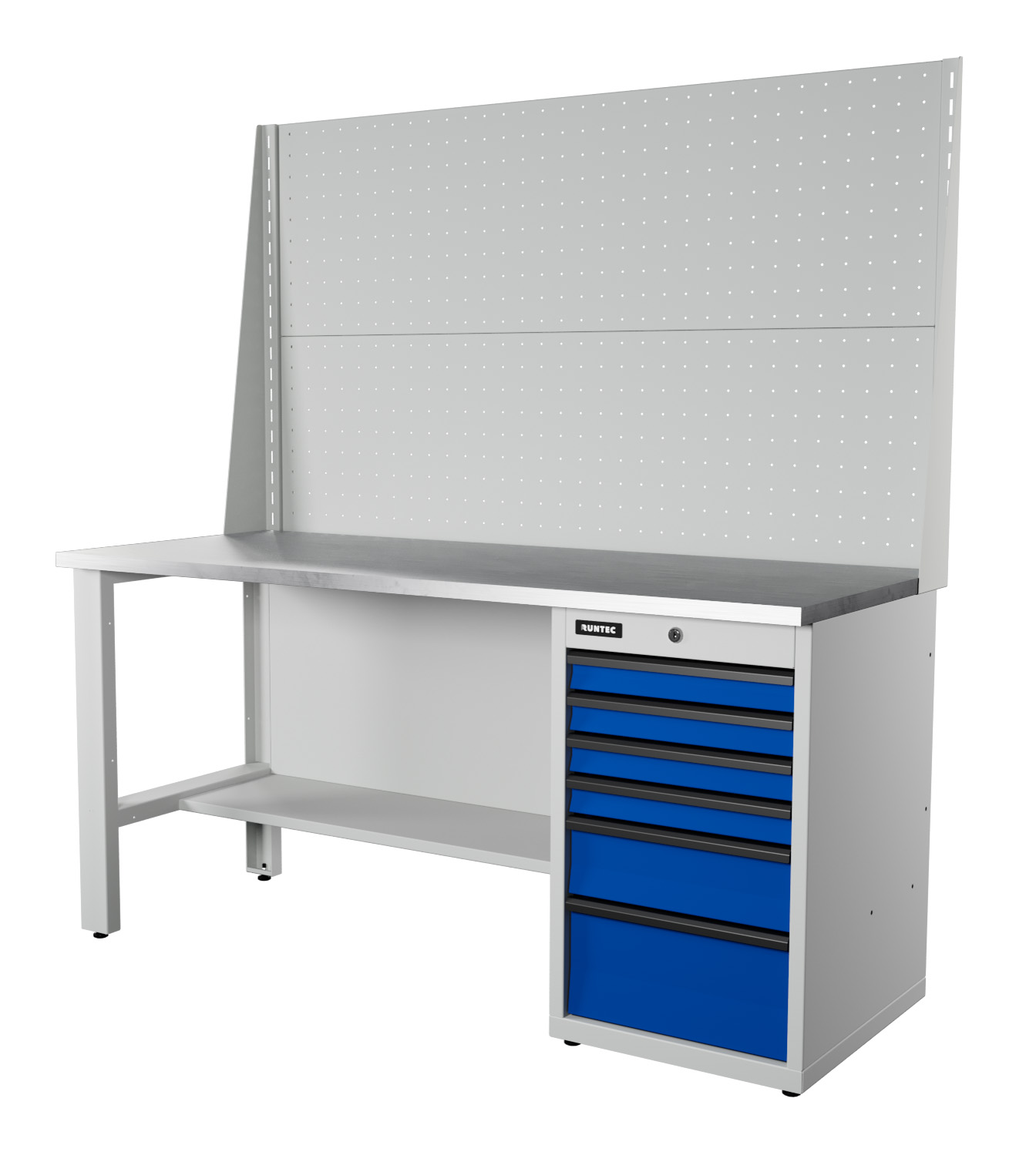 Верстак серии Industrial, 1700 мм, оцинк, тумба с 6-ю ящиками, экран 1000, синий (светло-серый) RAL 5005 (7035)