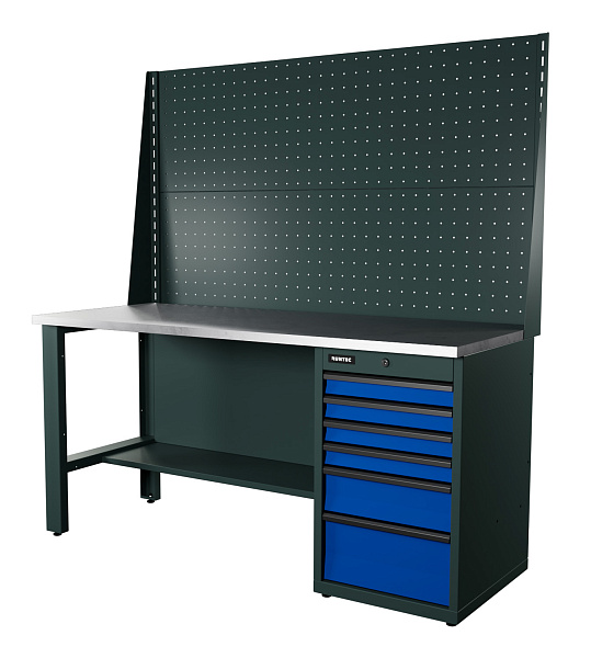 Верстак серии Industrial, 1700 мм, оцинк, тумба с 6-ю ящиками, экран 1000, синий RAL 5005, RUNTEC, RTI17Z-TI6-NI-P17-P17-5005
