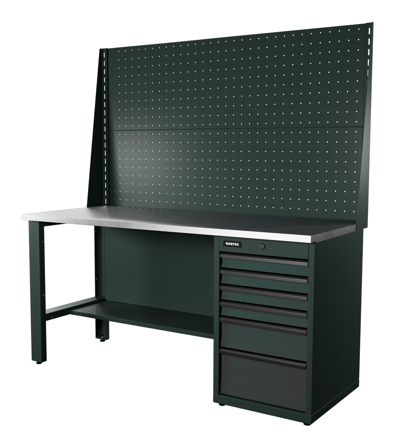 Распределенная нагрузка на верстак достигает 1500 кг благодаря использованию конструкционной стали толщиной от 1 до 2 мм при производстве сборочных составляющих. Эпоксидное порошковое покрытие устойчиво к механическим и химическим воздействиям.