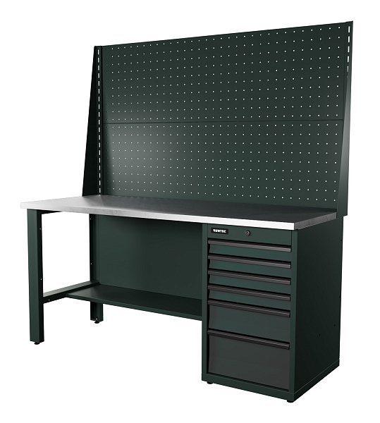 Верстак серии Industrial, 1700 мм, оцинк, тумба с 6-ю ящиками, экран 1000, серый RAL 7016, RUNTEC, RTI17Z-TI6-NI-P17-P17-7016