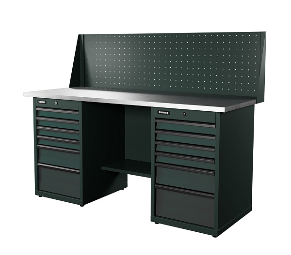 Верстак серии Industrial из конструкционной стали. Встроенные замки с системой Easy Lock позволяют закрыть все ящики одним поворотом ключа. Верстак рассчитан на распределенную нагрузку до 1500 кг.