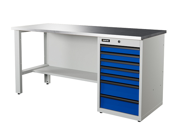 Верстак серии Industrial, 1700 мм, оцинк, тумба с 7-ю ящиками, синий (светло-серый) RAL 5005 (7035), RUNTEC, RTI17Z-TI7-NI-5005(7035)