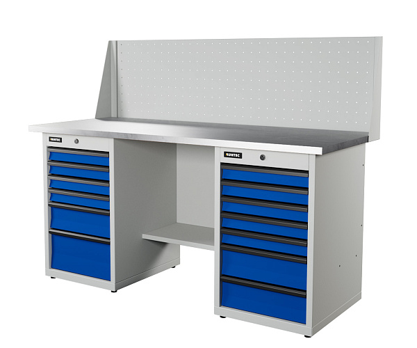 Металлические верстаки используют на производствах, в промышленности и частных мастерских. С помощью верстаков оборудуют стационарные рабочие места, которые выдерживают высокую нагрузку на рабочую поверхность. В тумбах хранят инструменты, оснастку, детали.