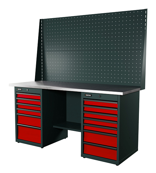 Верстак серии Industrial, 1700 мм, оцинк, тумба с 7-ю ящиками + тумба с 6-ю ящиками, экран 1000, красный RAL 3020, RUNTEC, RTI17Z-TI7-TI6-P17-P17-3020