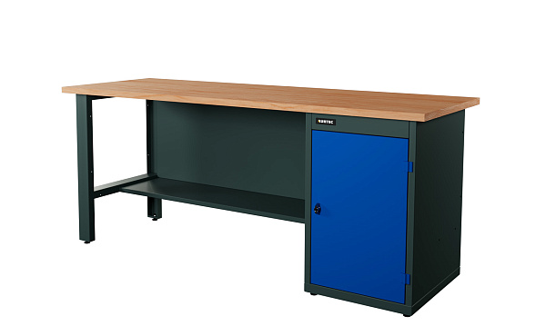 Верстак серии Industrial, 2000 мм, фанера, тумба с дверью, синий RAL 5005, RUNTEC, RTI20F-TI0-NI-5005