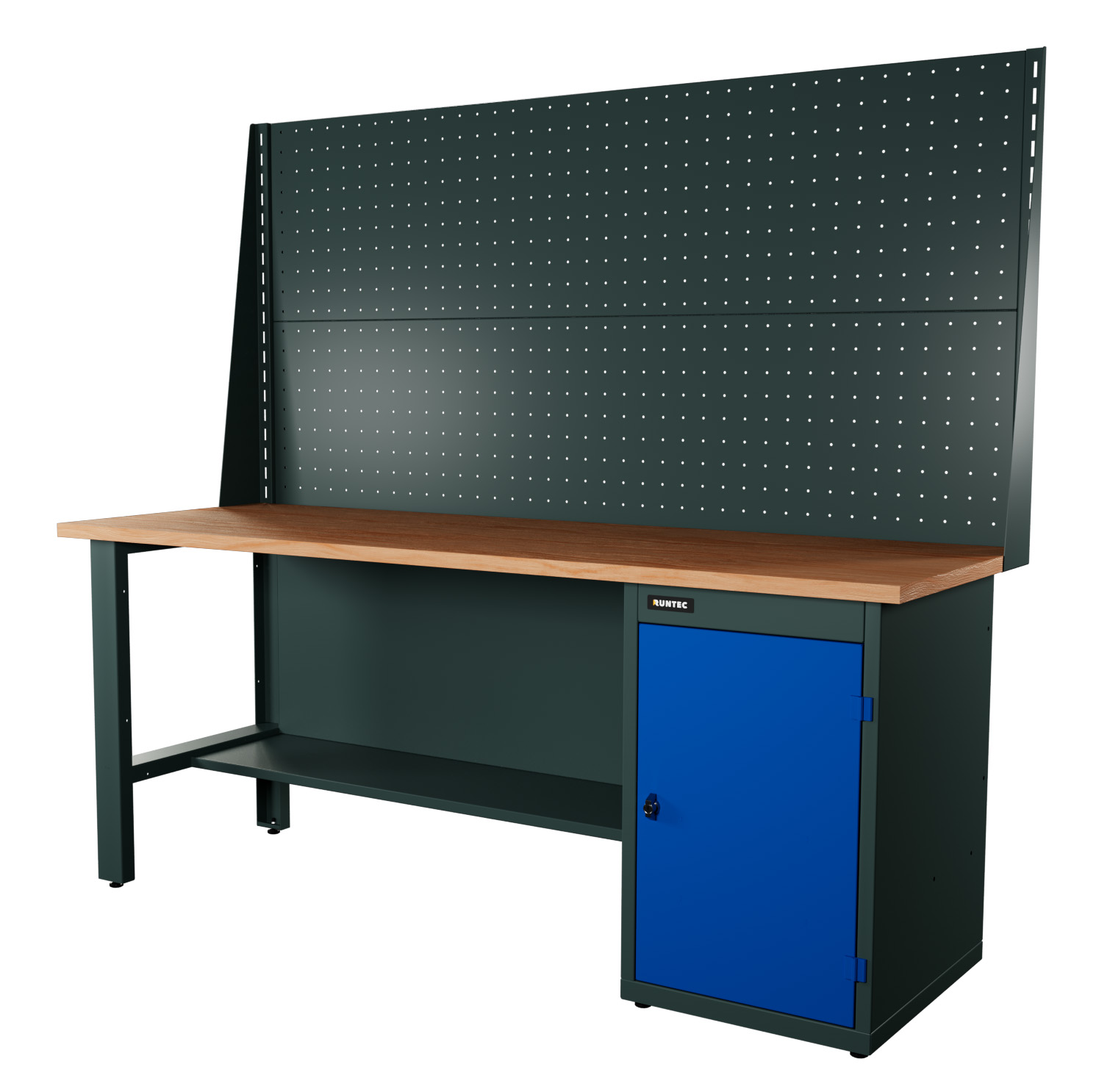 Верстак серии Industrial, 2000 мм, фанера, тумба с дверью, экран 1000, синий RAL 5005