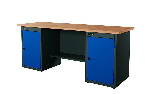 Верстак серии Industrial, 2000 мм, фанера, тумба с дверью + тумба с дверью, синий RAL 5005