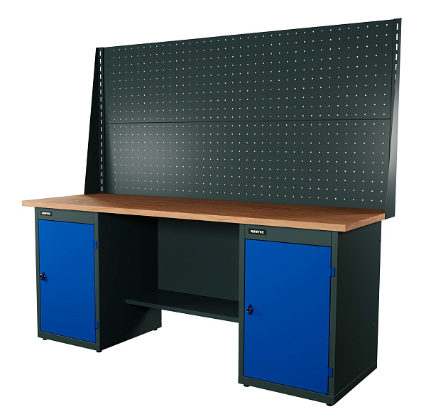 Верстак серии Industrial, 2000 мм, фанера, тумба с дверью + тумба с дверью, экран 1000, синий RAL 5005