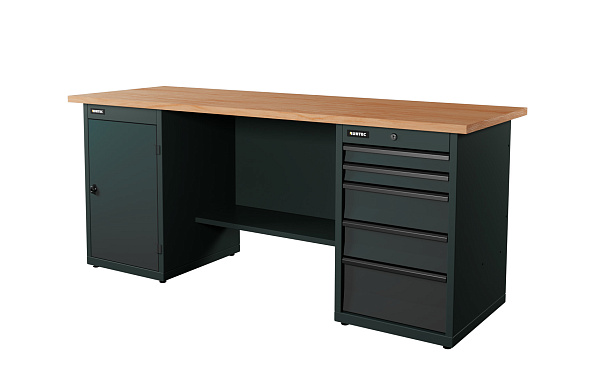 Верстак серии Industrial из конструкционной стали. Встроенные замки с системой Easy Lock позволяют закрыть все ящики одним поворотом ключа. Верстак рассчитан на распределенную нагрузку до 1500 кг.