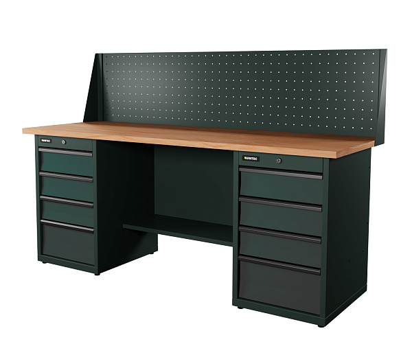 Верстак серии Industrial из конструкционной стали. Встроенные замки с системой Easy Lock позволяют закрыть все ящики одним поворотом ключа. Верстак рассчитан на распределенную нагрузку до 1500 кг.