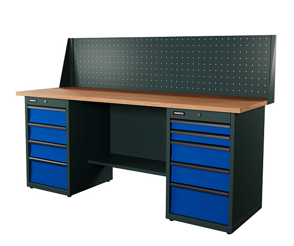 Верстак серии Industrial из конструкционной стали. Встроенные замки с системой Easy Lock позволяют закрыть все ящики одним поворотом ключа. Верстак рассчитан на распределенную нагрузку до 1500 кг.