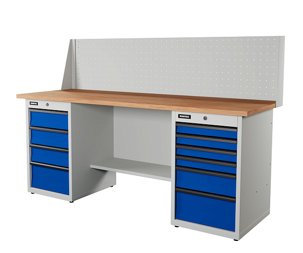 Верстак серии Industrial, 2000 мм, фанера, тумба с 4-мя ящиками + тумба с 6-ю ящиками, экран 500, синий (светло-серый) R