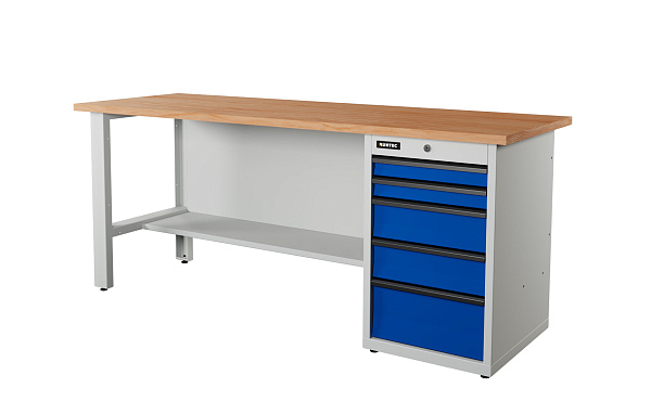 Верстак серии Industrial, 2000 мм, фанера, тумба с 5-ю ящиками, синий (светло-серый) RAL 5005 (7035)